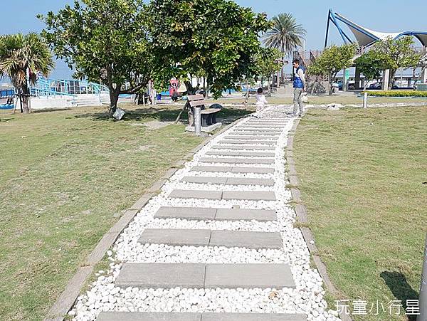 景觀步道、整齊乾淨的草皮,假日帶孩到此看海、玩沙,別忘了出門前要把玩沙工具帶上。