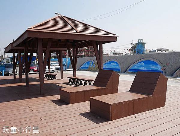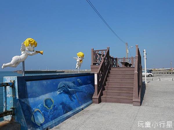 重新整裝現身的彌陀南竂漁港,水中廊道、大坡面磨石滑梯、戲沙、撿貝殼、濱海大道、3D彩繪。這天我們假日到訪,遊客並不多,少了人群的喧鬧,整體感覺非常悠閒自在。此地目前沒有任何攤販進駐,若有覓食需求建議到彌陀市區找找。