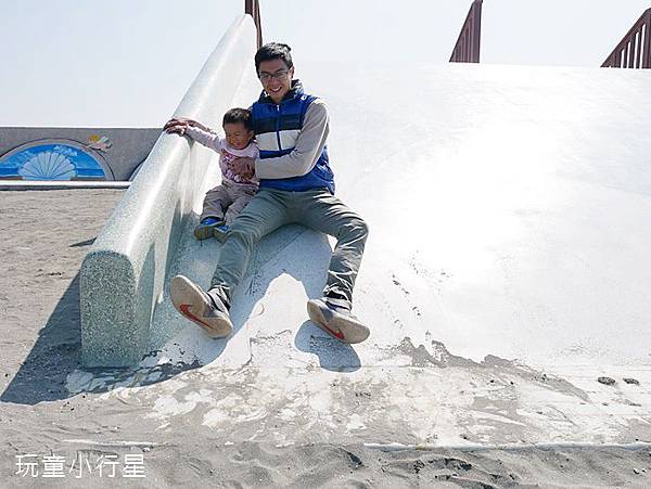 滑溜度十足的磨石滑梯,爸爸和雞腿寶共玩,雞腿寶笑得好開心。腿寶爸著地捧心發表感言表示滑溜時他感覺有點緊張。雞腿寶的膽量都比他大了,他還能夠自己爬上去滑溜好幾趟。