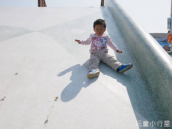 大坡面的磨石滑梯,這是我第一次看到寬度這麼寬的滑梯。比之前雞腿寶去的新北中和錦和運動公園、華山大草原的都還來得寬。