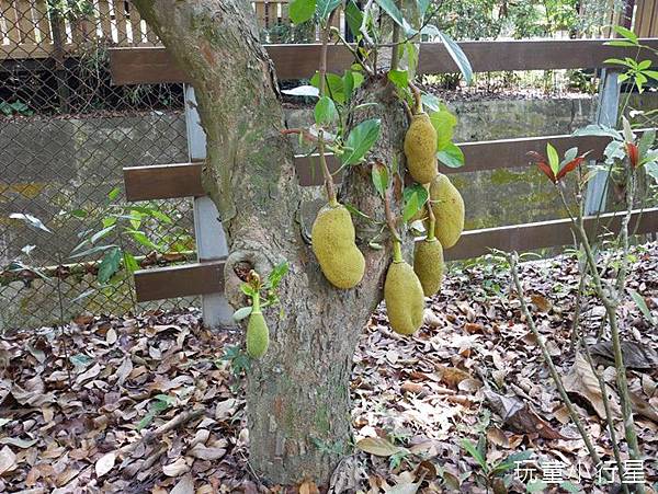 新化林場內最吸引雞腿寶注意的就是波羅蜜,碩大的果實可以做成果汁、果醬。小手摸摸看感受一下波羅蜜的表皮觸感吧。