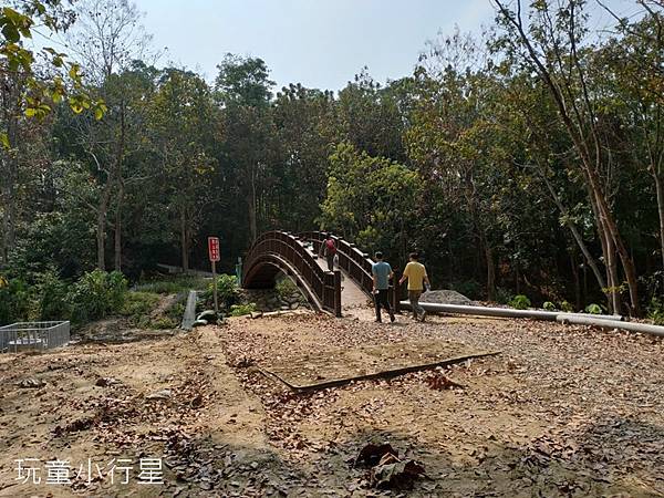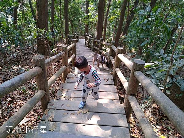 步道路面有柏油、土、礫石、階梯、小橋,大致上好走,且林木多,在此行走感覺頗為涼爽。