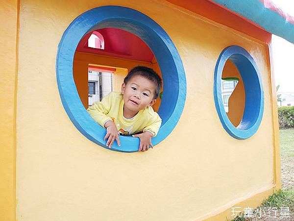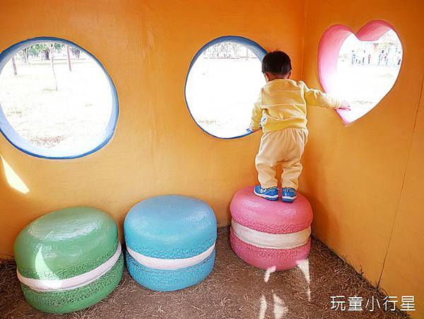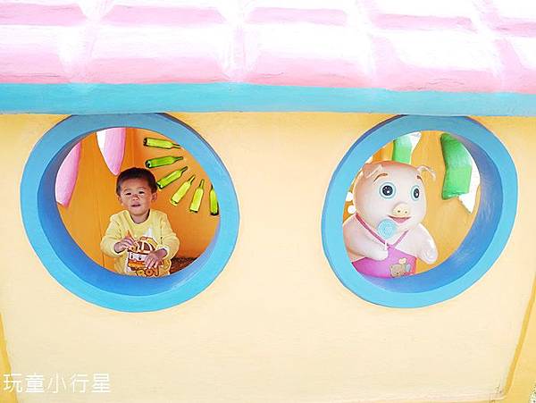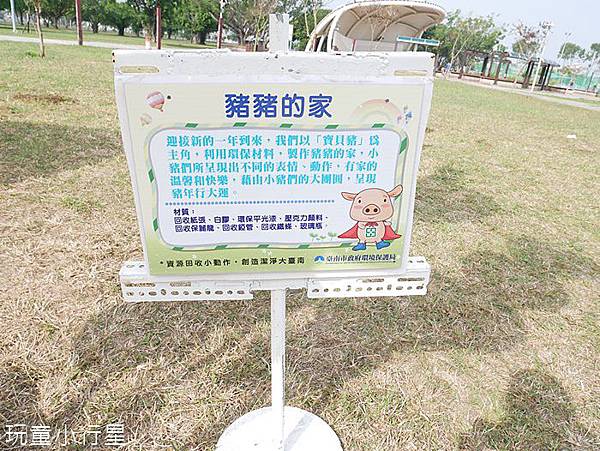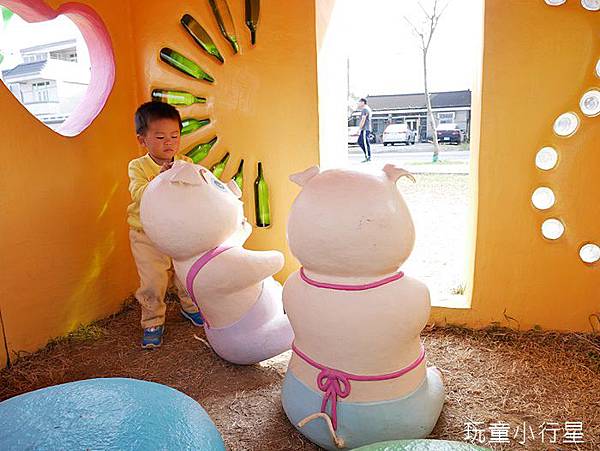 這組豬豬的家是臺南市政府環保局運用回收材料製成的,童趣的造形頗受孩童歡迎。幼童可以到豬豬的家內從窗戶遍覽公園景緻。