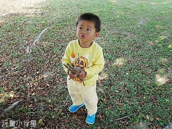 公園內綠地上種植了多株榕樹,雞腿寶喜歡撿拾樹枝。