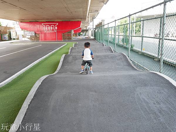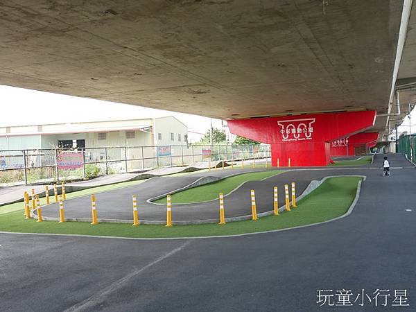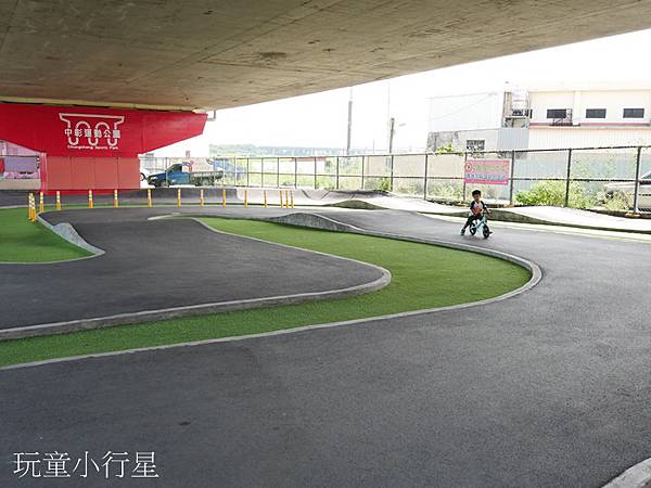 自從孩子開始練習騎滑步車之後,幾乎天天都要帶他到公園或自行車道練騎。無意間發現中彰運動公園有專門設置給小朋友練習騎乘的場地,地點在國道下面,可遮風蔽雨防晒,還有免費停車場。小朋友可以在此騎滑步車、腳踏車、直排輪、滑板…等有輪的騎乘運動設備。