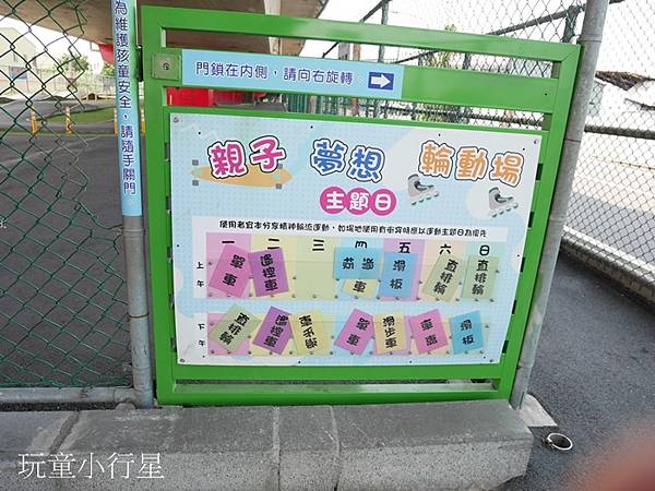 這天我們將車子停妥後,停車場旁就是夢想輪場地入口。入口處有設置可上鎖小門,周圍與馬路相鄰處也有安裝防護欄。安全程度高。