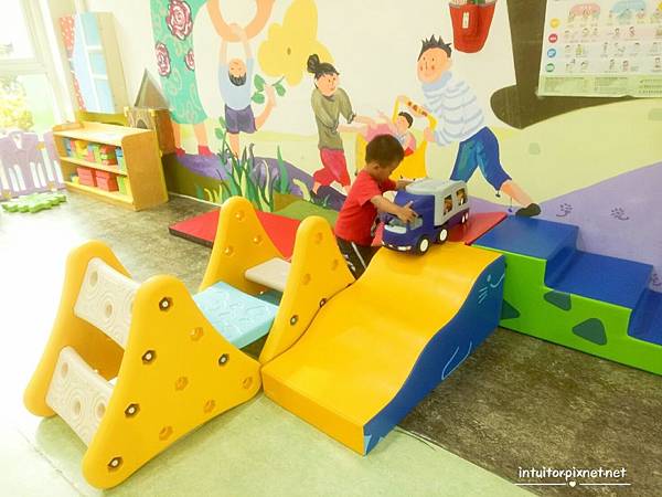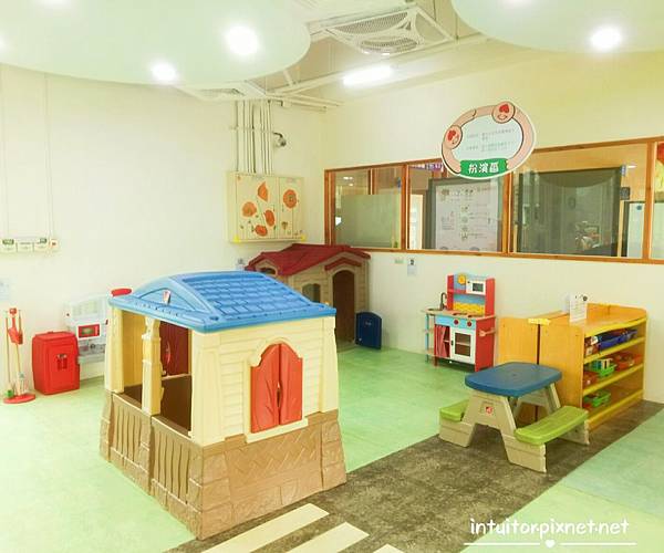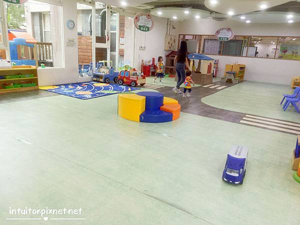遊戲區在育兒中心一樓,二樓為托嬰中心。一樓遊戲區分為室內及室外。室內遊戲布置以主題區分,實際上每個區塊並無明顯間隔,父母在此可以將全場一覽無遺。