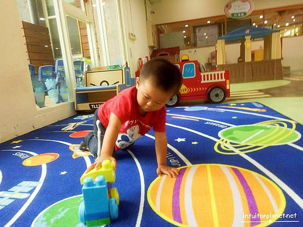 雞腿寶最愛的軌道玩具,雖然配備沒有南灜親子館多,他還是玩得好開心。