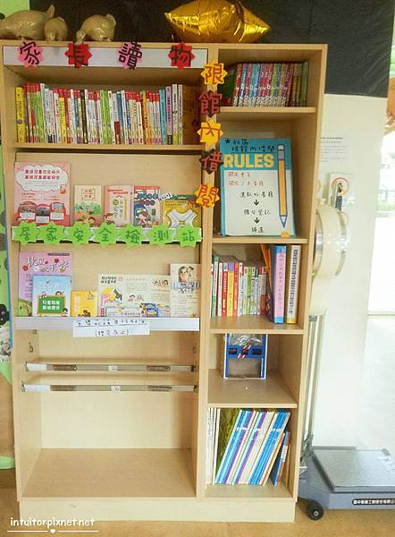 館內有多種童書可以借閱,書架陳列在兩個櫃子,鄰近櫃台。若要借閱書本,需申請成為育兒資源中心會員。可借除了新書至多四本,借期一週。