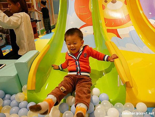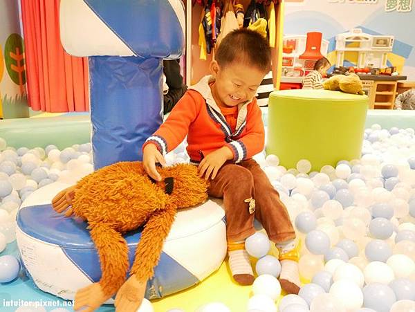 這天水氣較多,加上新天地遊戲愛樂園有優惠活動,因此我們便決定到此遊玩。整體而言空間不大,內有扮家家酒、變裝、球池、滑梯、施轉設施。平日遊玩不限時間,假日限兩小時。雖然我本人覺得這個遊戲區的內容相當尋常,這天雖是平常日但到訪的家長小孩很多,一向不愛人擠人的我自然覺得玩樂品質較差。對雞腿寶這年紀的孩子來說,只要有得玩,擠不擠似乎不大重要。