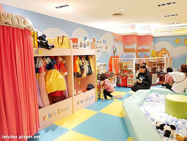 臺南新天地遊戲愛樂園位於三F,園區整體空間不大,內有球池、滑梯、扮家家、變裝區、diy區(需另外付費)。