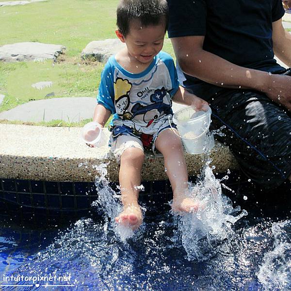 全身濕透的雞腿寶,笑容堆疊在臉上,跟陽光一樣耀眼的笑靨,讓你一眼就明白「我現在玩得很開心喔」