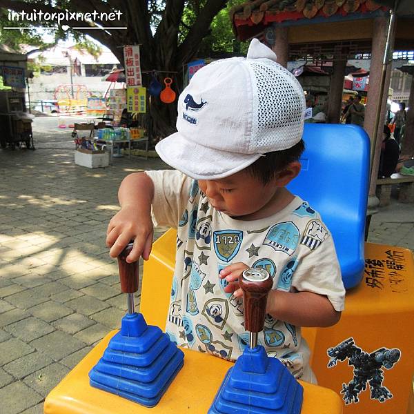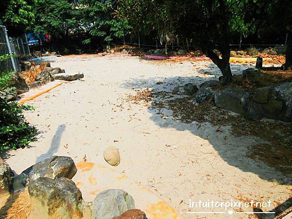 前文提到在葡萄地景滑梯附近有投幣式的挖土機可玩,這樣玩沙還不過癮就到靠近神社處的白沙坑玩。只是這附近沒有清洗區,建議沙坑區最後遊玩,並自備水瓶簡易清潔後返家整理較為舒暢。