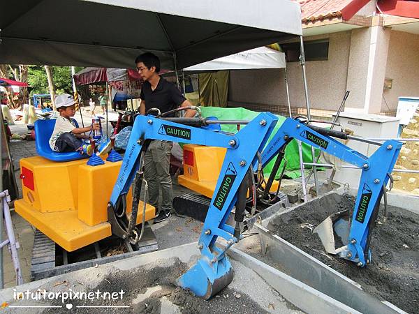 玩沙是童年遊戲最重要的一環,百果山風景區內設置了兩台小型挖土機,遊玩一次要五十元。即使沒有投幣,兒童坐上去摸摸控制軸過過癮也很有樂趣。如果還想玩沙怎麼辦,別擔心!百果山風景區內有一處白沙坑,後續照片即將呈現。