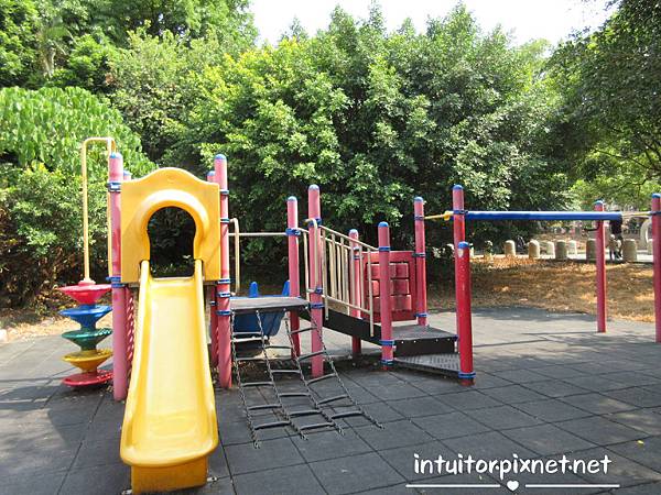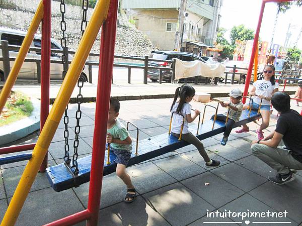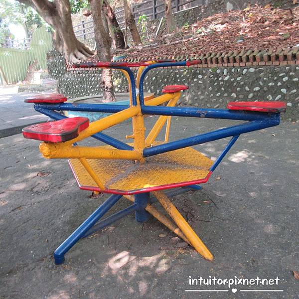 在葡萄地景滑梯附近的蹺蹺板底部有設置彈簧減緩衝擊,遊玩較為安全。下圖這三款蹺蹺板完全就是我小時候的蹺蹺板款式,遊玩擺盪幅度大較刺激。外子說他在國小時有次玩這款蹺蹺板玩到手指受傷,大概是因為這類蹺蹺板較危險,因此現在在多數公園、學校內的蹺蹺板都是有改良過擺盪幅度較為和緩。