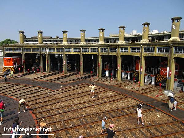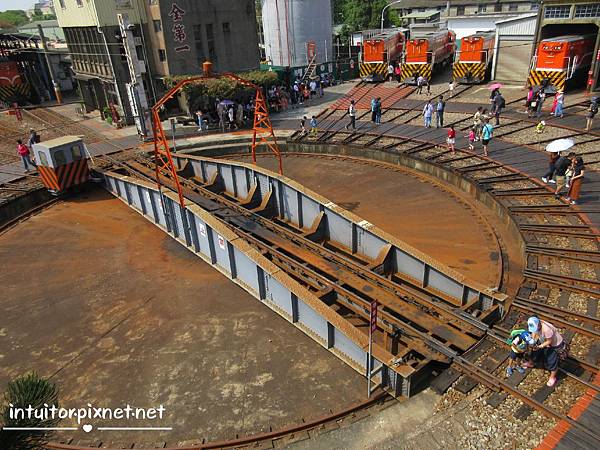 扇形車庫又名「火車頭旅館」,火車頭到圓形轉盤裡籍此機具旋轉到要進入的車庫裡。總共十二間火車頭維修站。這天我們假日到訪遊客如織,看到火車頭在轉盤旋轉移動到車庫裡的機會實在渺茫。