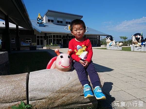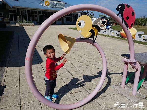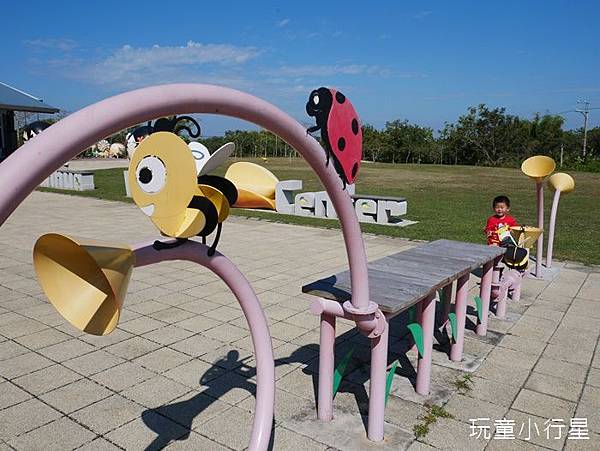遊客中心前方的蜜蜂造型車阻,還有傳聲筒功能。