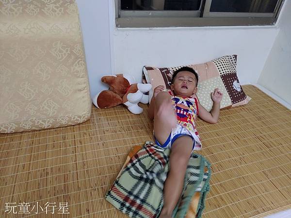 有時遇到非常不順利的狀況。例如某天孩子從上午八點半到十一點半騎車加和其它小朋友玩遊戲,午飯後頻頻揉眼精,看起來就是一副想睡的模樣。我要陪他在床上睡覺,卻還是一直說他想要玩玩具,說自己睡不著。到了下午三、四點時體力不支,眼皮越來越重,我一直呼叫他不想讓他在此刻入睡,如果真的叫不醒,讓他睡不超過一小時就挖起來洗澡,這時他會開始哭鬧,不管怎麼安撫都無法讓他平靜下來。如果我在他哭鬧中途跑去上廁所,他還會來敲我門,我連如廁都感到壓力陪增。午睡硬撐著不想睡,就會比平常更黏著我,我走到哪就跟到哪。為了彌補他的睡眠,這天我必需儘快結束家務,讓他快點回房入睡。