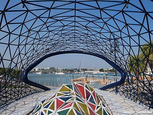 藝術家楊士毅以不銹鋼鋼管焊接構成,大魚中間以彩色釉燒玻璃鑲鉗組成台灣島嶼形狀。遊客可以在大魚上抬頭看彩色玻璃組成的台灣,再拾級而上到大魚內部看安平港景緻,抬頭從不銹鋼管縫隙仰望天空。