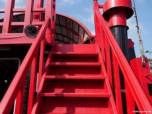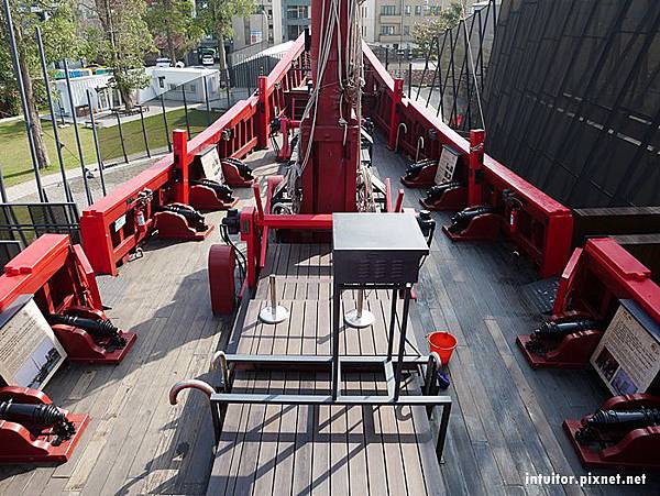 參觀臺灣船主體,需從船左側時間艙斜坡上去,由於船主體較多高低落差且出口方向是階梯,較不適合帶推車上去,建議嬰幼兒推車可放在入口附近。