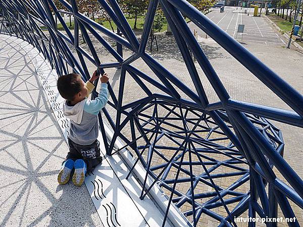 勿攀鋼管!這天我們到訪看到有位小姐居然爬上大魚尾巴,這種破壞藝術品的行為太不可取了!