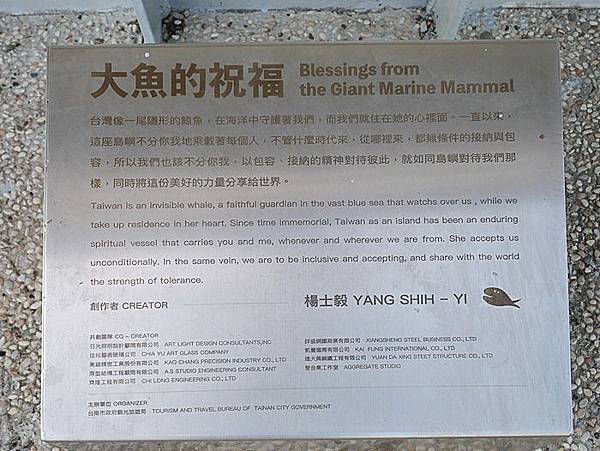 大魚的祝福在2019年於港濱歷史公園登場,成為多數遊客來訪安平遊玩新打卡地標。白天在太陽金玉光束照射之下顯得特別耀眼。夜晚點燈時步行在公園有種被大魚守護的感覺。