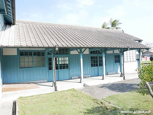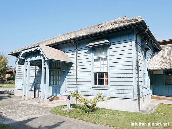 1923年建造的北門出張所,為木造日式官舍辦公廳舍。淡雅的土耳其藍外觀搭配藍天耀陽,讓這裡成了拍攝婚紗的取景點之一。
