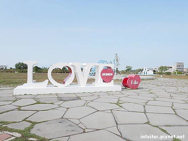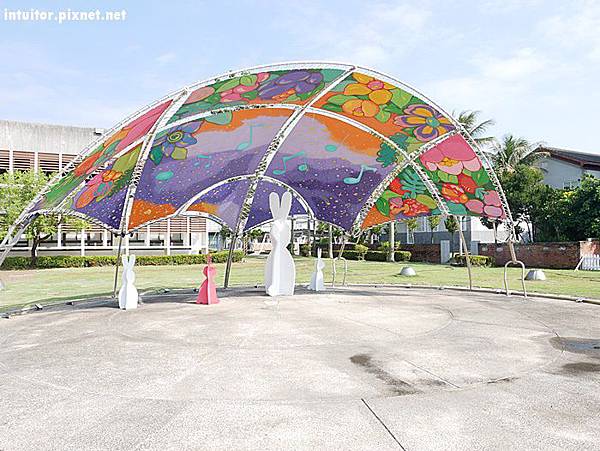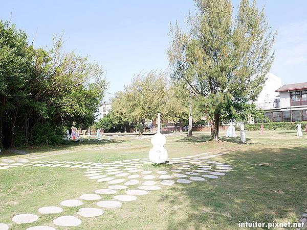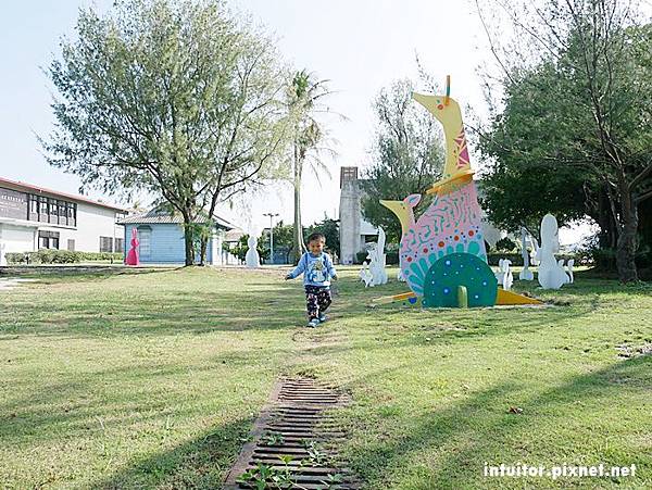 雲嘉南濱海風景管理處內夢奇地綠地乾淨整齊,多彩的裝置藝術點綴其中讓畫面更加豐富,小孩在綠地內可以自由走跳,想餵魚就到鄰近餐廳買魚飼料。