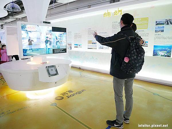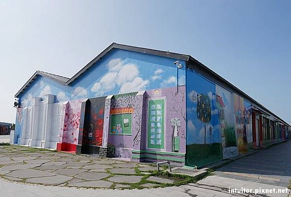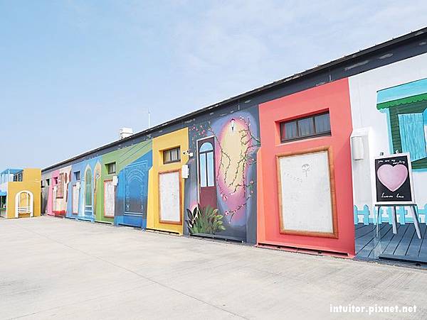 北門遊客中心由北門洗滌鹽工廠舊點庫群改建而成,彩繪牆每一片都值得細細品味。中心內有抹香鯨標本、體感互動裝置,地板上有詳細的超大景點地圖。戶外設置了多樣的地景藝術品,來到此地總是會讓人不由自主的想湊上前合照幾張。