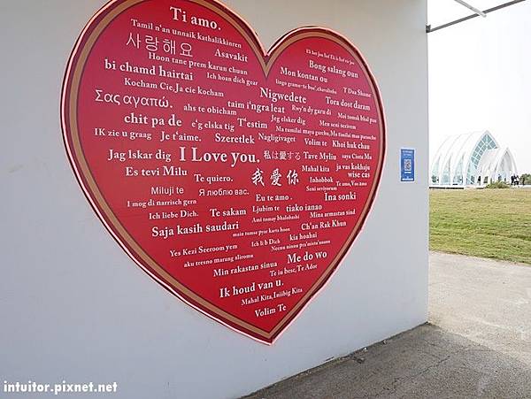 ▼寫有各國「我愛你」文字的愛心牆