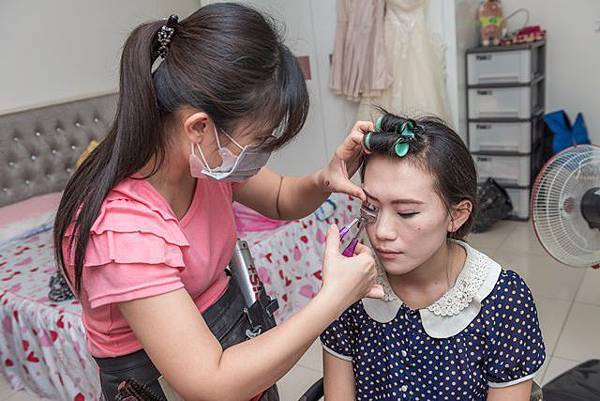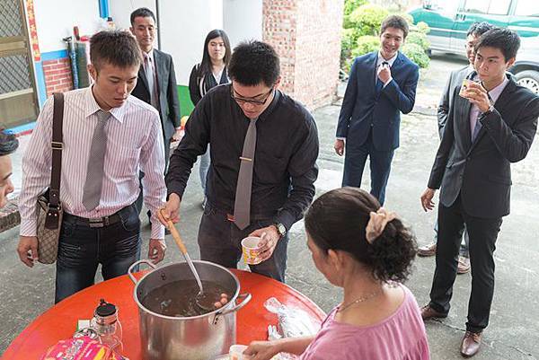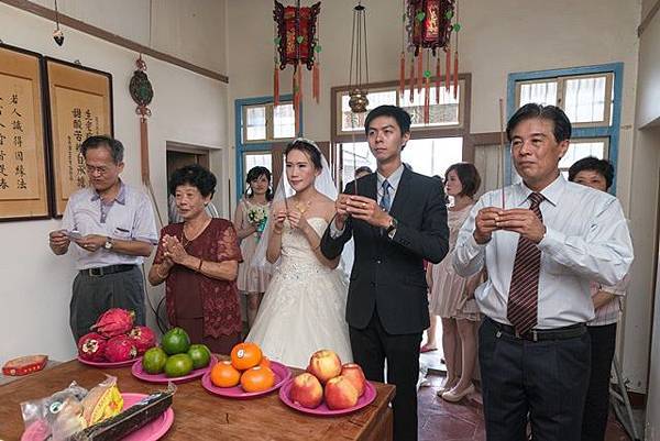 就在我梳化的同時,另一邊主副攝BRUCE正在下營阿嬤家拍男方結綵、行前的準備工作