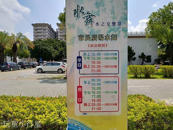 開放地點在新營民治市政府前方市民廣場,地面噴水會搭配音樂。晚上還會有燈光秀。水池約2-3天清洗。