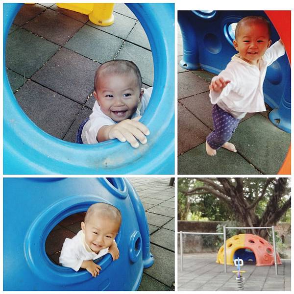 半圓型的攀爬遊具,適合幼童遊玩,還能夠鑽進去,從洞洞看外面風景。