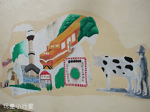因相鄰善化糖廠,牆上彩繪內容自然含概了糖廠風情