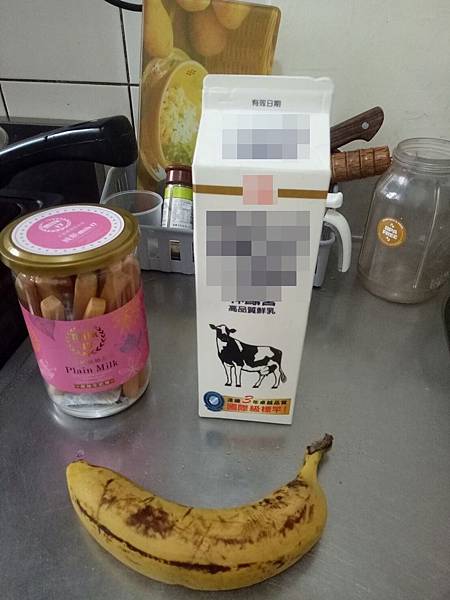 因此我另準備一條香蕉、牛奶,用果汁機打成香蕉牛奶,