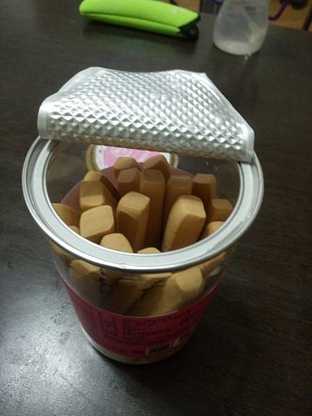 純新牛奶棒到手後,雞腿寶已經迫不及待要打開罐子品嚐風味