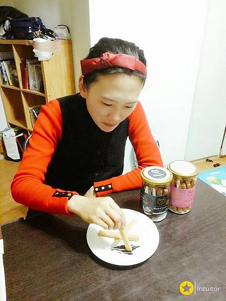 將牛奶棒擺盤後使用筷子夾起來吃
