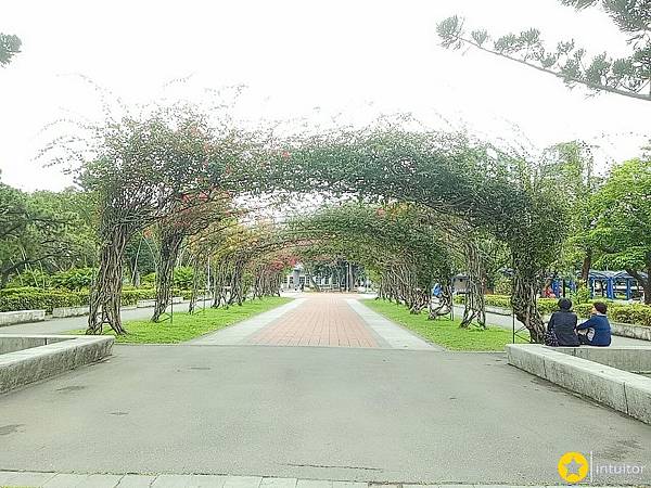 ▼九重葛花廊,常有民眾在此拍攝婚紗照