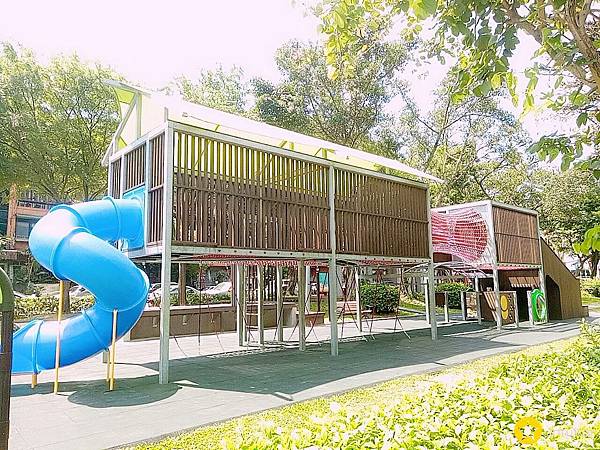 遊具:2層樓水管滑梯、一層樓磨石子滑梯、沙坑