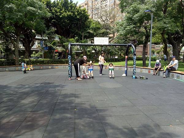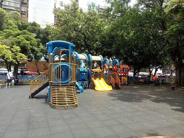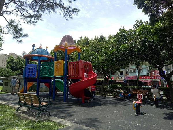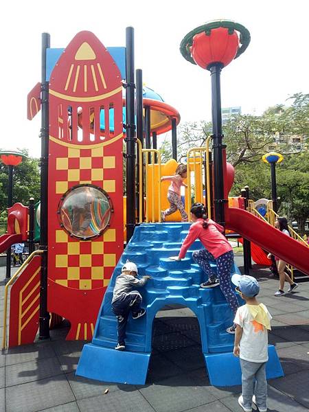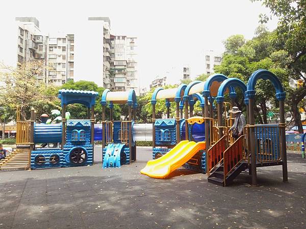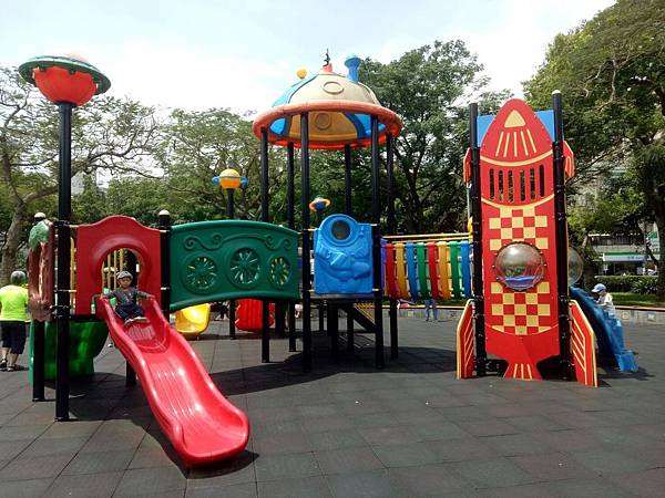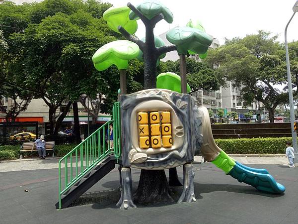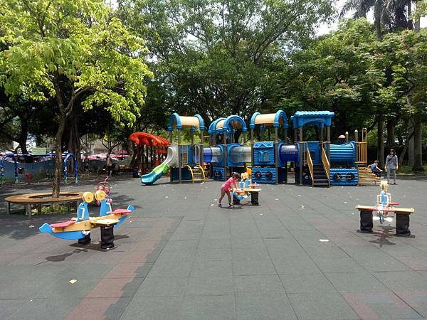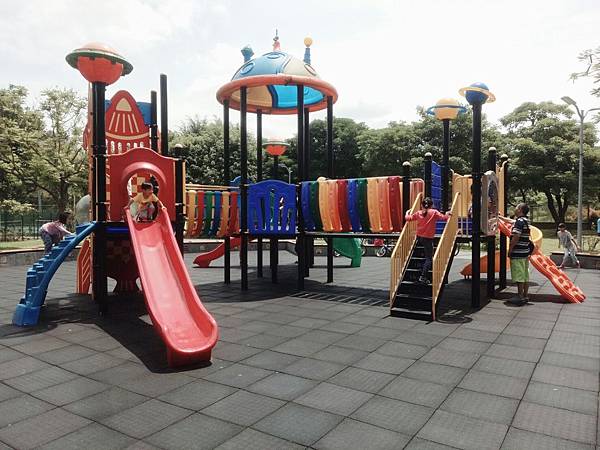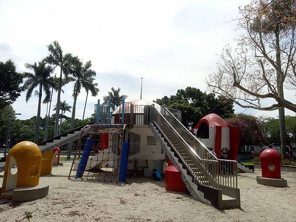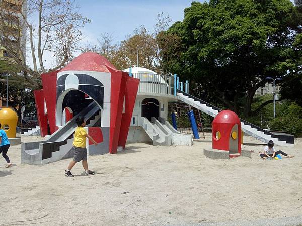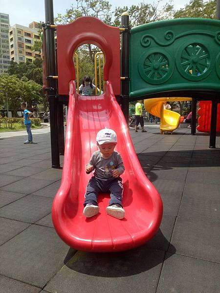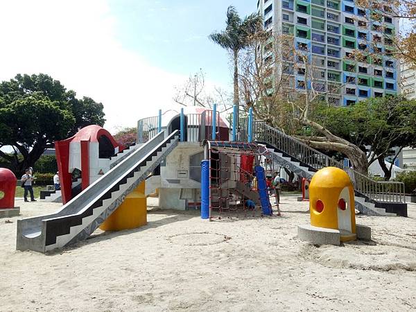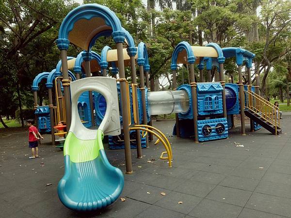 繼續往公園內部走,發現有一區域有組合滑梯,看起來乾淨多了