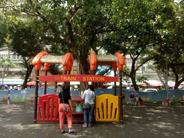 ▼靠近菜市場的兒童遊戲區,此款組合遊具外觀以火車為造型