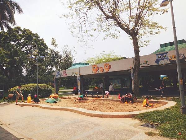 兒童遊戲區遊具組粗略估算共計六組,沙坑共計三處。