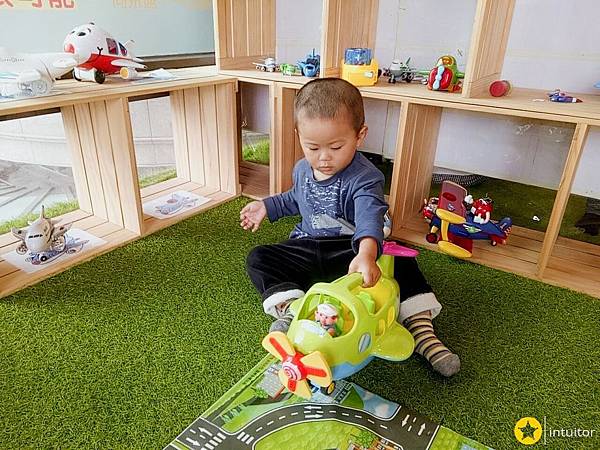前方L型區域有飛機玩具、廚房玩具