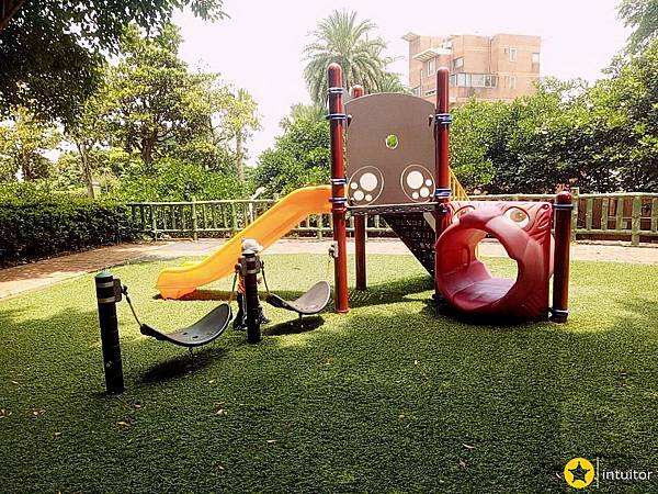 有組合滑梯遊具、搖搖椅、鳥巢鞦韆。