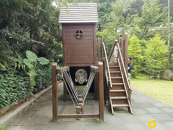 ▼遊戲木屋,組合攀爬、擺盪木橋