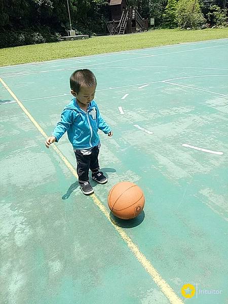 ▼籃球場玩球。司令台旁有一籃子裝了些球,遊玩後別忘了放回去原位。