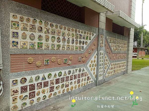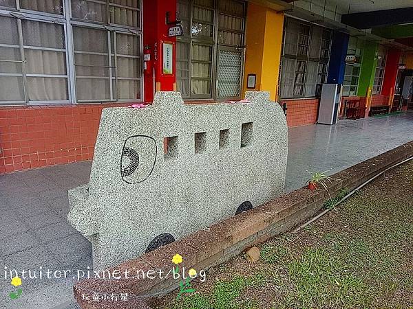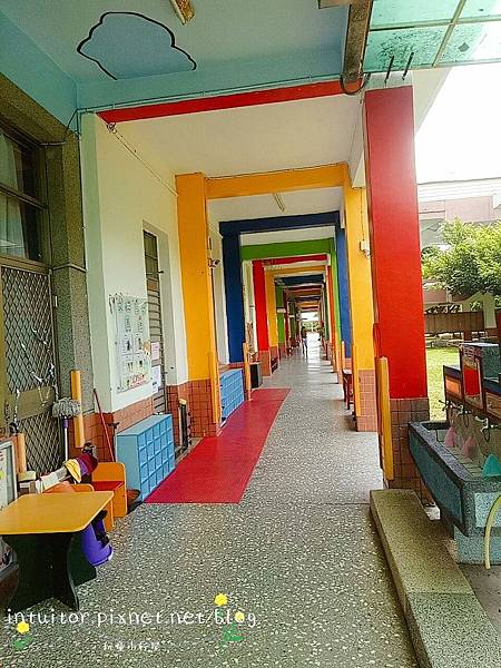 ▼文正國小走廊柱子上漆上了鮮明的色彩