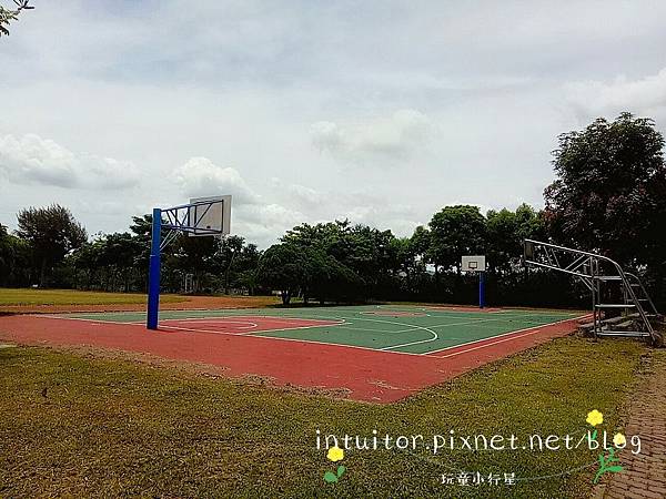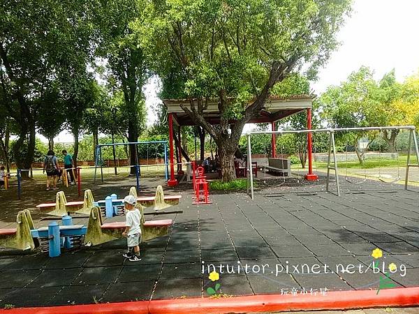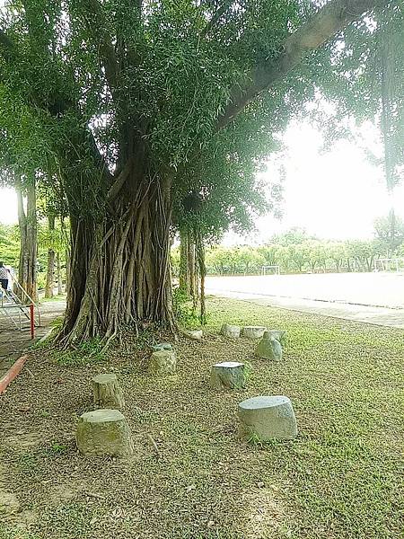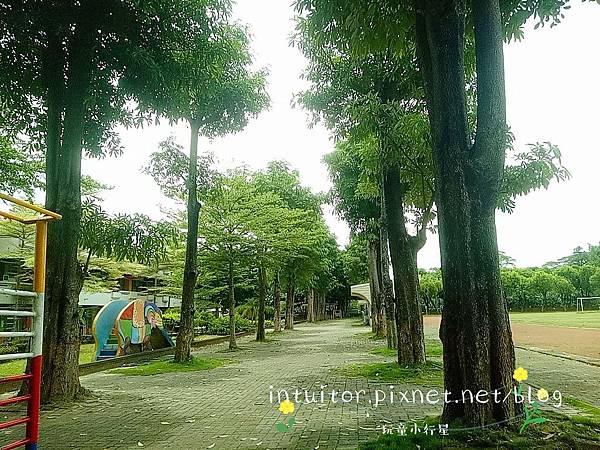 遊戲區旁有榕樹、楓香、黑板樹環繞,