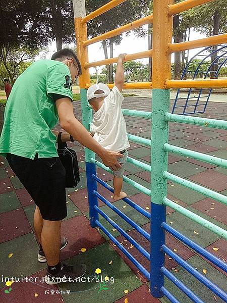 記得一開始帶雞腿寶到鄰近小學遊玩那時他才剛開始會站立