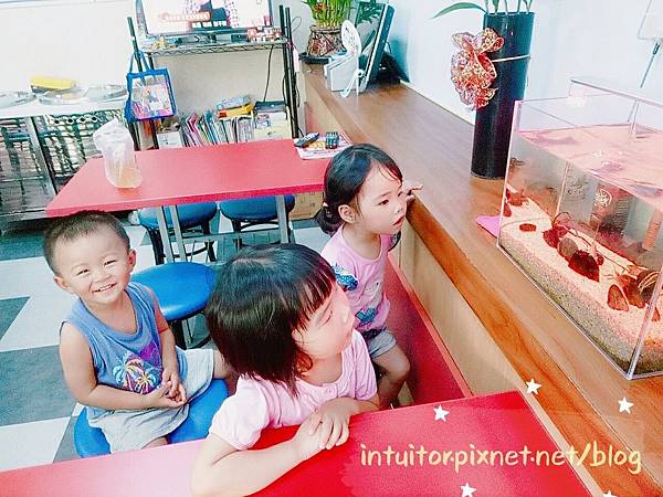 ▼在等待餐點上桌時,店內水族箱吸引孩童目光,